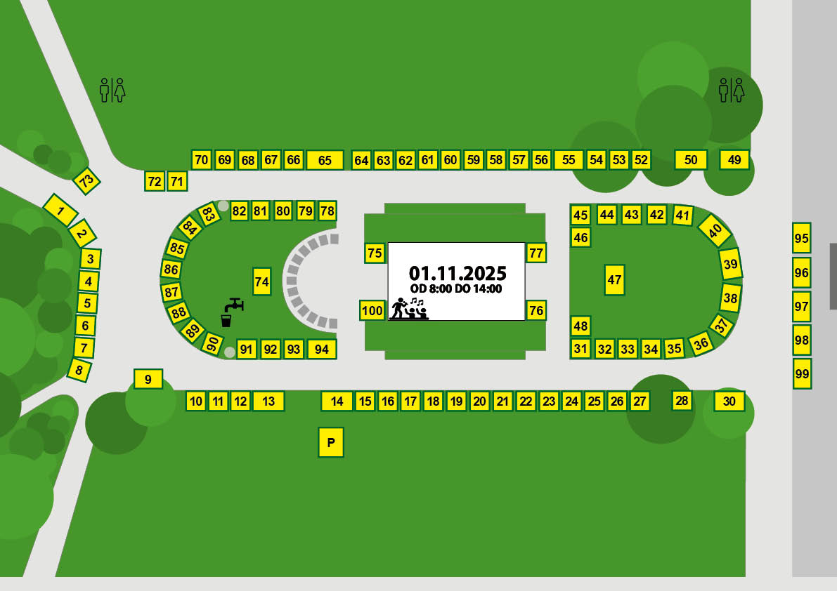 *modrou barvou jsou označeny stánky, které mají velikonoční zboží