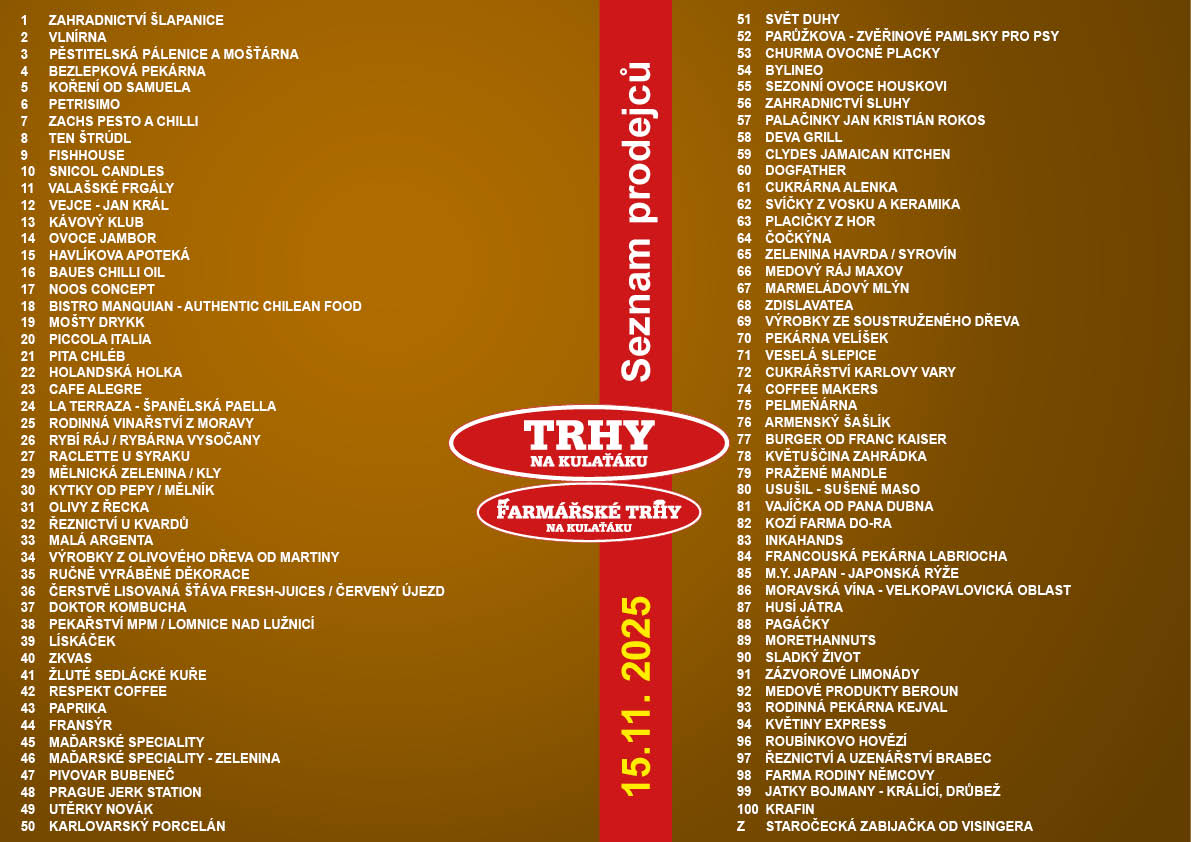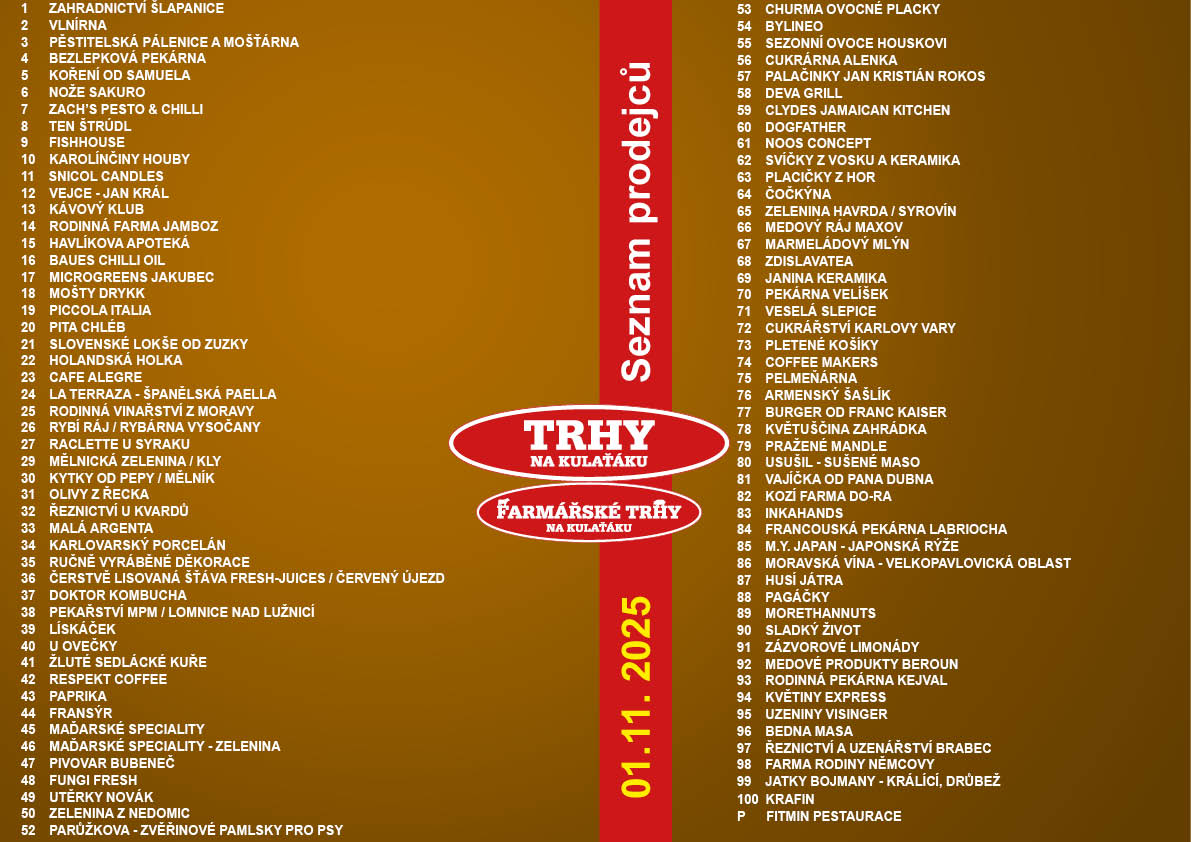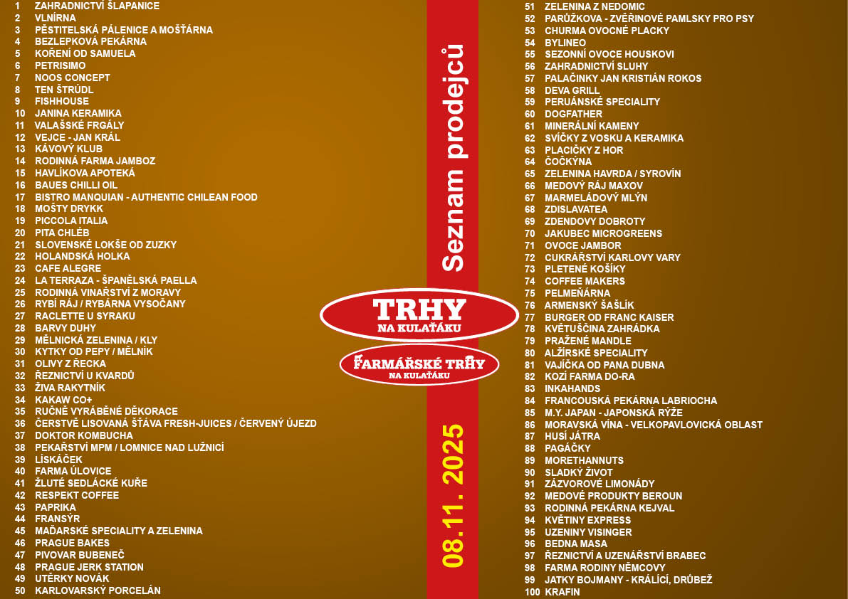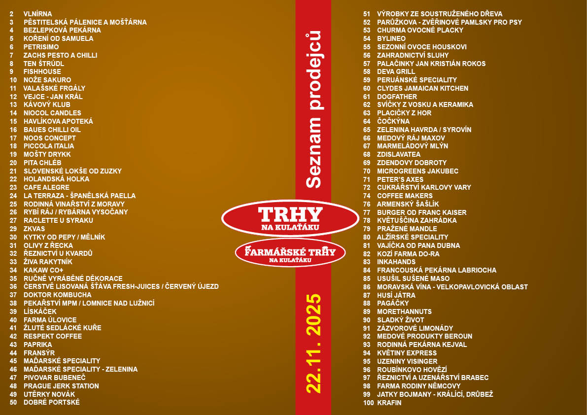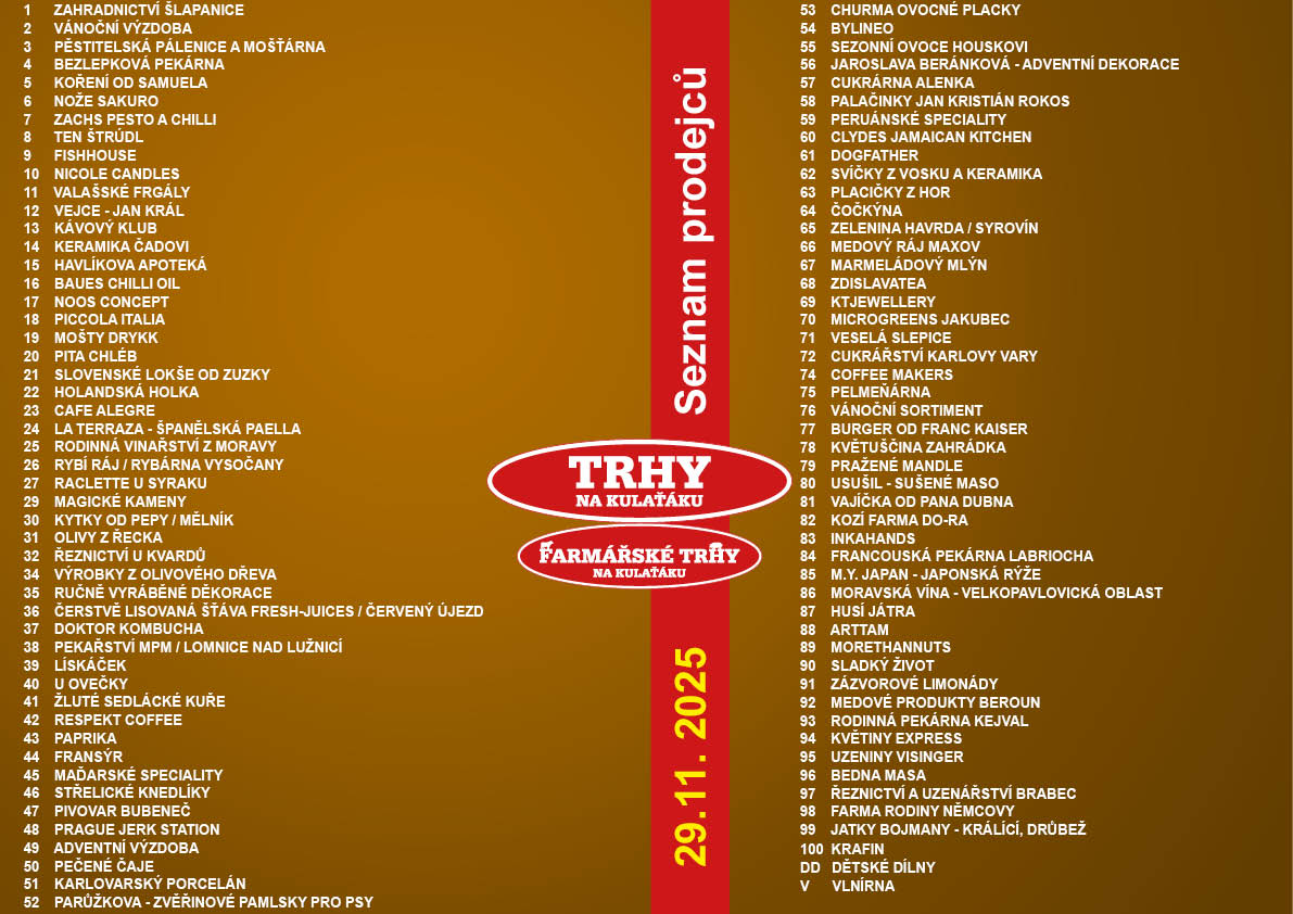 *červenou barvou jsou označeny stánky v rámci akce "MDŽ na trzích" - když řeknete kód: KULATAKMDZ, tak dostanete 10% slevu